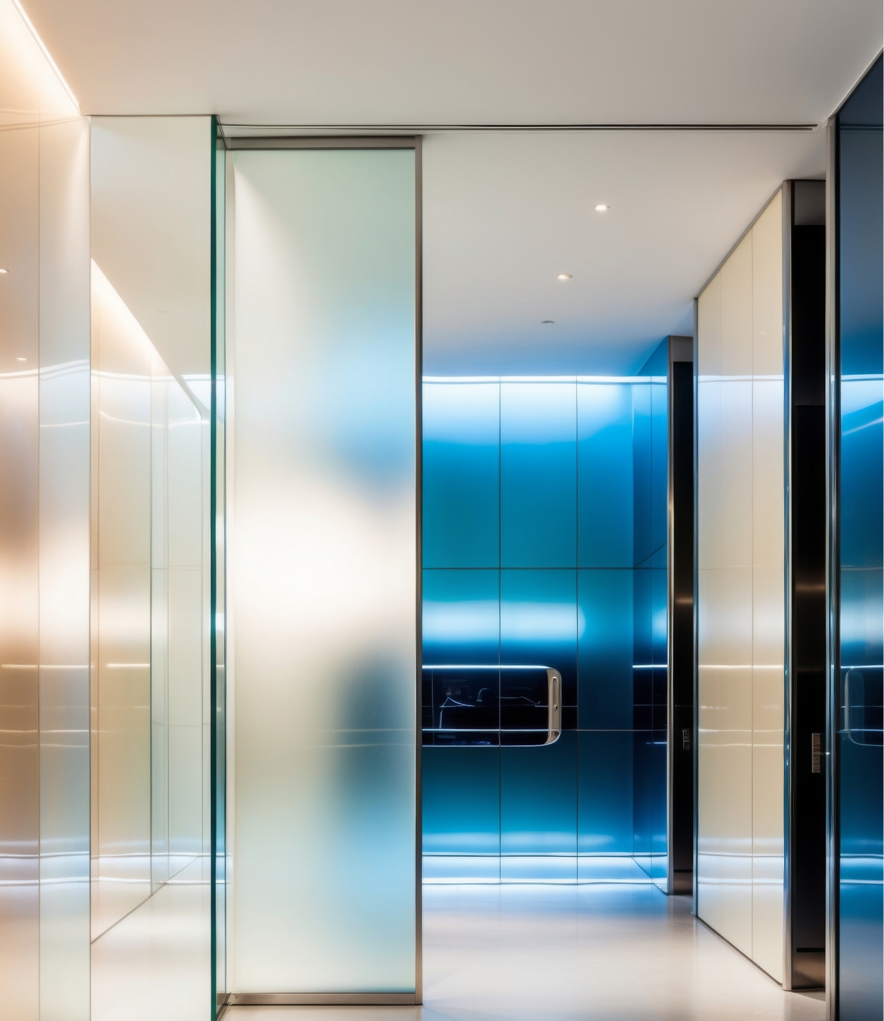 Alle dørene kan kombineres med rammer i aluminium eller tre, og leveres med beslag og håndtak tilpasset byggets design. Våre glassvegger med dør ivaretar krav til både lydisolasjon og brannmotstand, og brukes ofte i cellekontorer, møterom og fellesarealer der det er behov for visuell åpenhet uten å gå på bekostning av akustisk komfort.